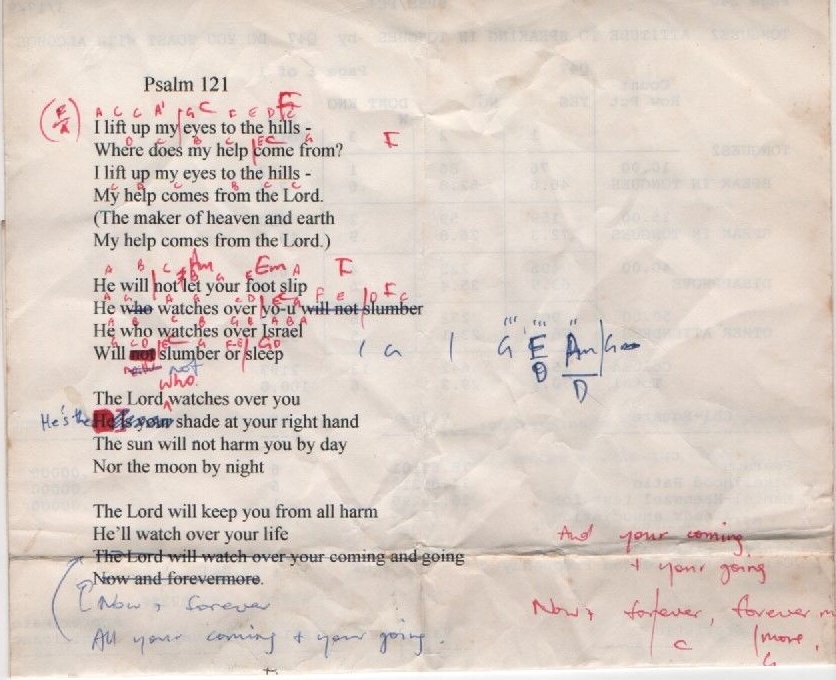 This is Psalm 121 from the Bible put to some music I wrote a few decades ago. The music is gentle and reflective in style. I lift up my eyes to the hills, Where does my help come from? I lift up my eyes to the hills